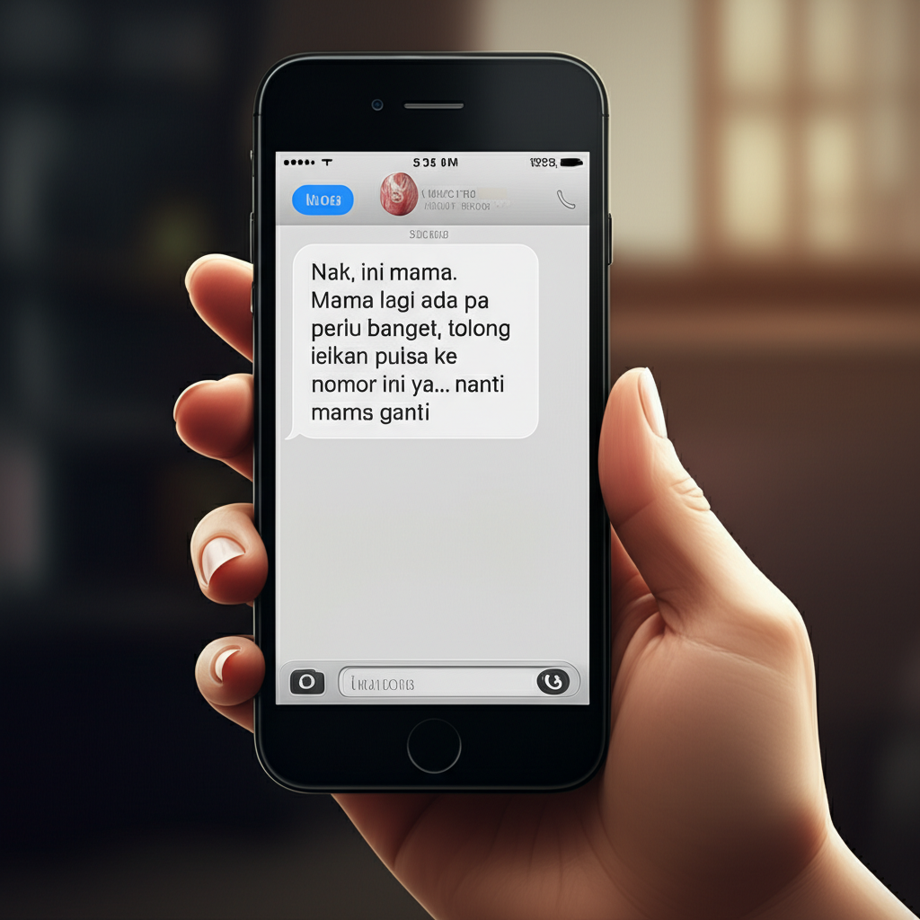 Pelaku akan mengirim pesan dari nomor tak dikenal, namun dengan gaya bahasa yang seolah-olah dari ibu kandung Anda. Pesan tersebut sering diawali dengan sapaan akrab seperti "Nak", "Sayang", atau "Ini Mama". Inti pesannya selalu sama: meminta pulsa atau transfer uang segera dengan dalih darurat. Alasan yang digunakan pun beragam: HP rusak, dompet ketinggalan, sedang di rumah sakit, atau butuh pulsa mendesak untuk menghubungi seseorang. Nada pesannya seringkali panik atau mendesak agar korban tidak sempat berpikir panjang.
